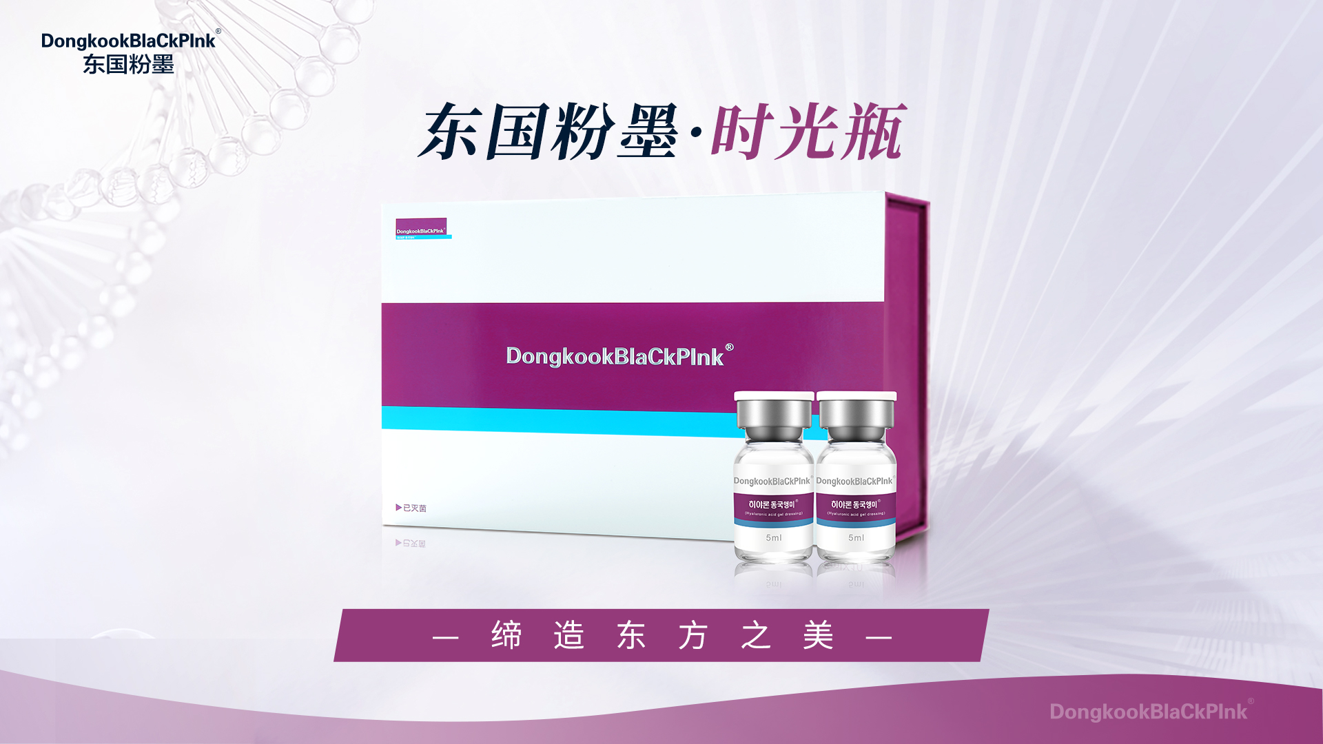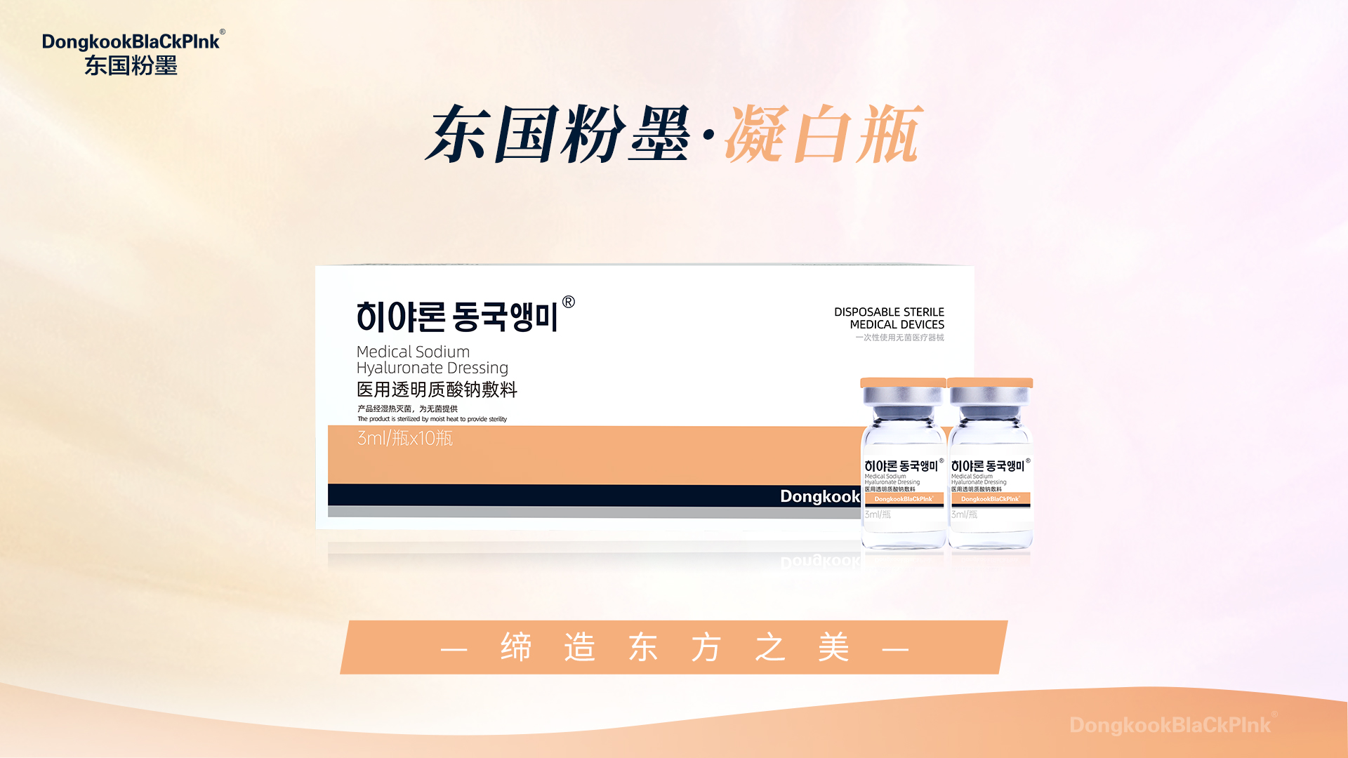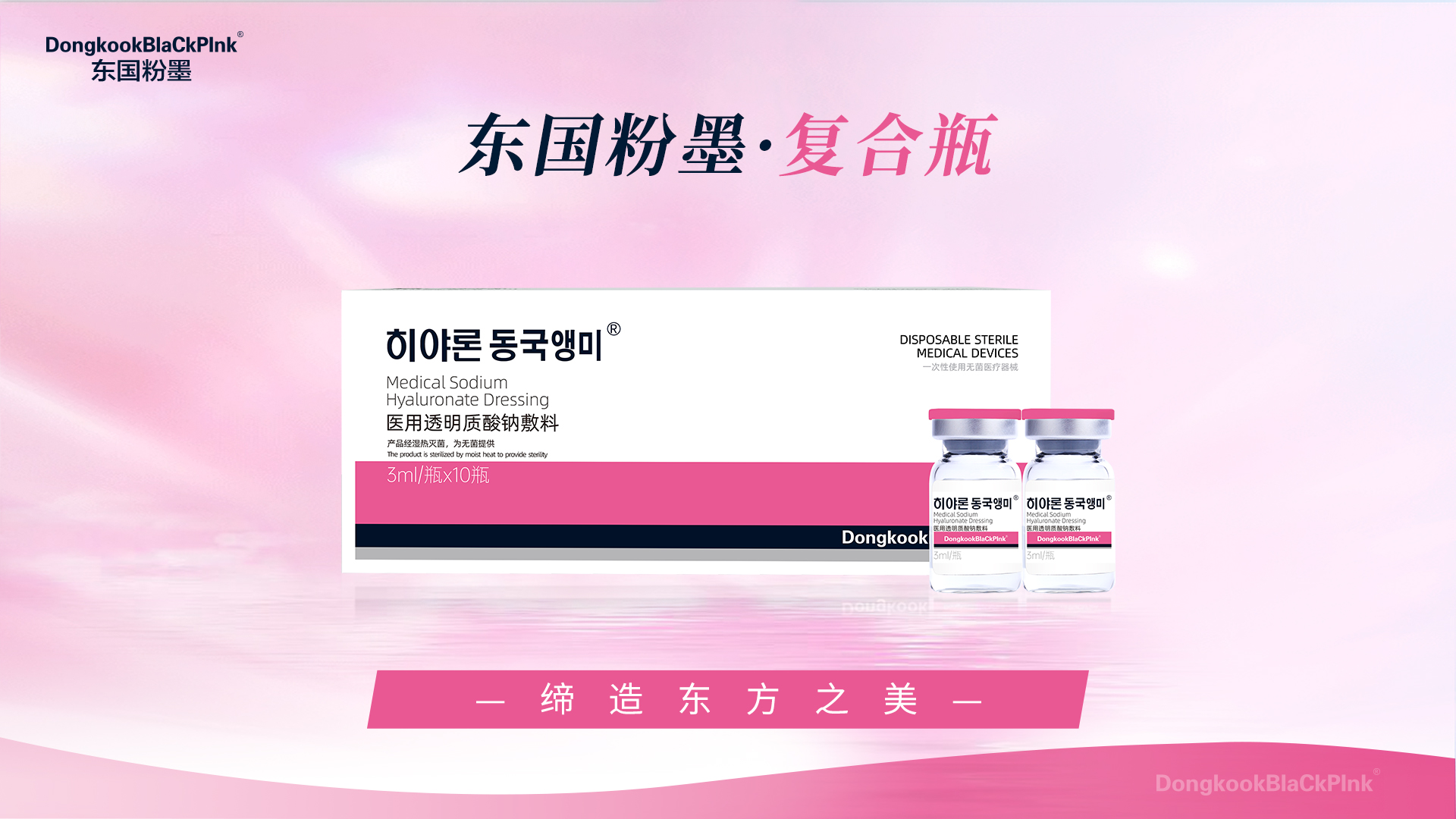 企业/品牌简介:东国粉墨品牌,专注在透明质酸基础上的多维度应用,以基础+功效为核心,是市场为数不多同时涵盖非交联透明质酸和交联透明质酸的国民品牌,以“缔造东方之美”为品牌slogan,喊出“全民水光·东国粉墨”的响亮口号,旗下拥有基础水光、平纹针、凝白瓶、修复瓶、复合瓶、时光瓶、械字号修复面膜和16水光针等多款王牌产品。深耕精细化产品运营,多维度、高层次、宽领域满足消费者多样化需求。